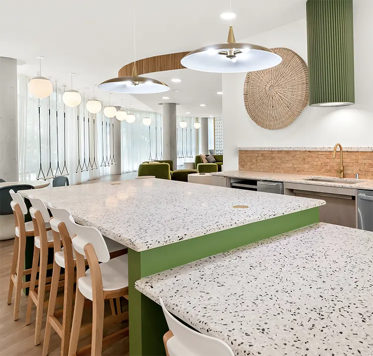 Lounge in our luxury clubroom, meet your neighbors, get caught up on work, get dinner going for your group, and rest easy.